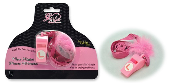 "L Plate" Whistle with Marabou, each on blister card.