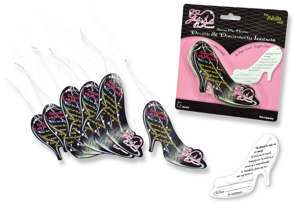 Girl's Night Out Drunk & Disorderly Labels, 6 pcs. on blister card.