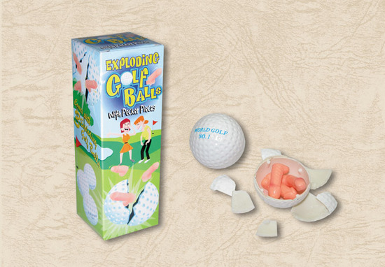 Exploding Golf Balls with Pecker Pieces, 3 Balls in printed box.